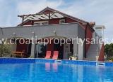 Prodaje se kuća sa bazenom u novogradnji udaljena 80m od mora. Smještena je u centru mjesta, svi potrebni sadržaji nalaze se u neposrednoj blizini (100m). Sastoji se od prizemlja, kata i podruma koji je namijenjen za vešeraj. U prizemlju se nalaze dvije spavaće sobe, od kojih jedna....