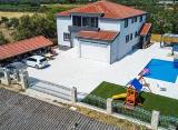 Vila sa bazenom na zemljištu od 830 m2. Podrum: Konoba (30 osoba) u rustikalnom stilu sa šankom, wc-om, skladiste, tehnička soba sa Air-Condition stanicom, vinska konoba. Prizemlje: 3-soban komforni stan, dva balkona, garaža sa dva parkirna mjesta. Prvi kat: 4 studio apartmana, svaki....