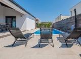 Samostojeća kuća s bazenom i prekrasnim vrtom na udaljenosti od 150 m od mora. Nalazi se na parceli od 730 m2 i ima ukupno 145 m2 stambene površine. Kuća je specifičnog rasporeda, sastoji se od polu etaža i etaža, te je takav raspored čini posebnom. U prizemlju se nalazi kuhinja,....