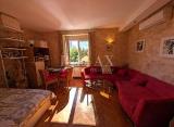Stan je službeno u prizemlju, ali u naravi je prvi kat. Južne orijentacije i ima dijelom pogled na more. Koncepcija 2s+db +1 manja sobica. Uredan i održavan. Centralno grijanje sa kalorimetrima, ali ima i 2 klime. Vanjska stolarija izvorno drvena. Kuhinja ostaje u cijeni, a namještaj....